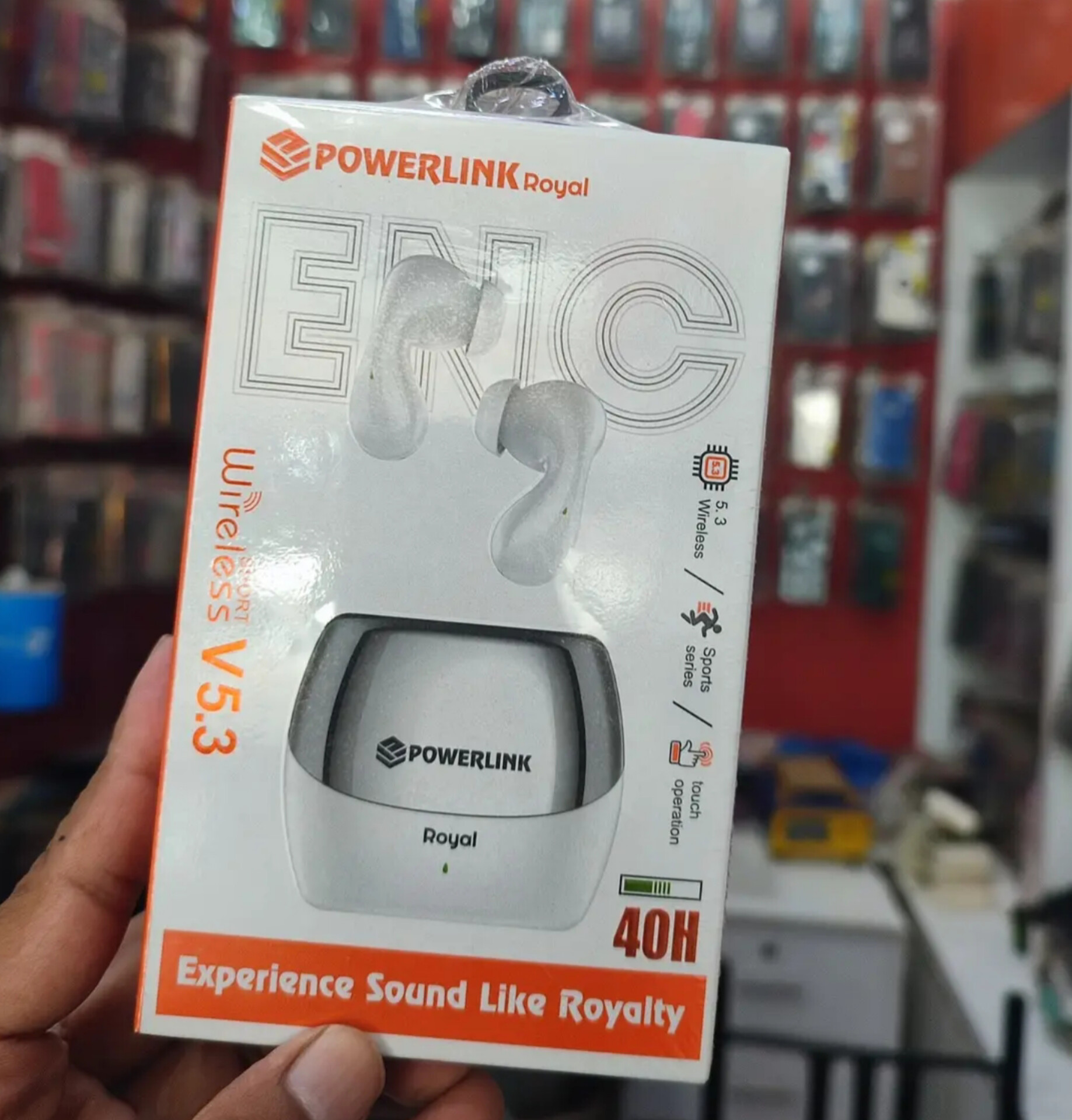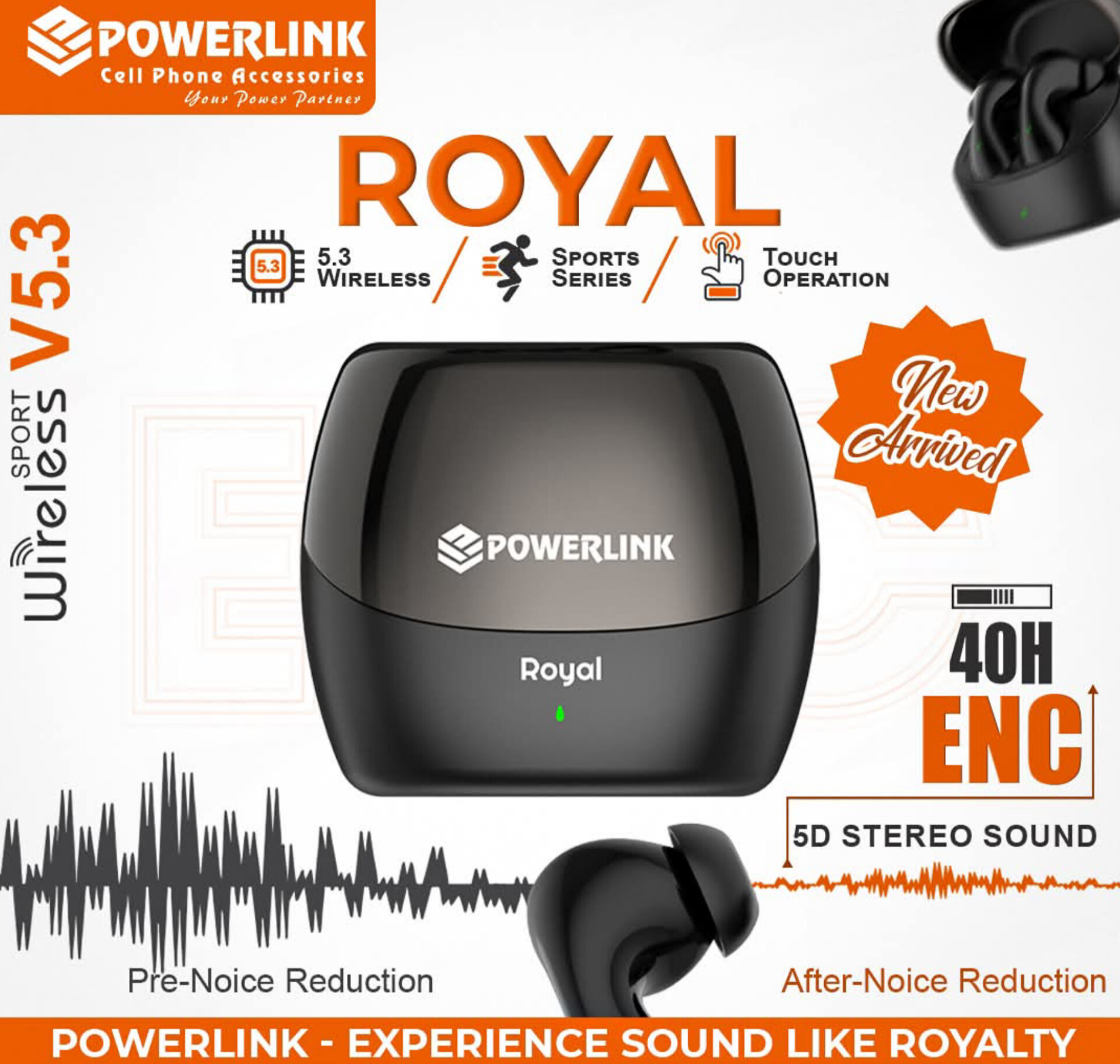 Powerlink Royal Wireless Earbuds | ENC Noise Cancelling Bluetooth 5.3 Headphones | 5D Stereo Bass, 40H Playtime, Touch Control, Sport Series Earbuds for Gym & Running